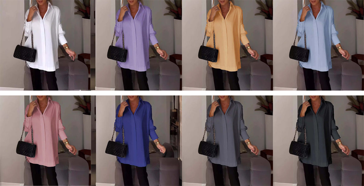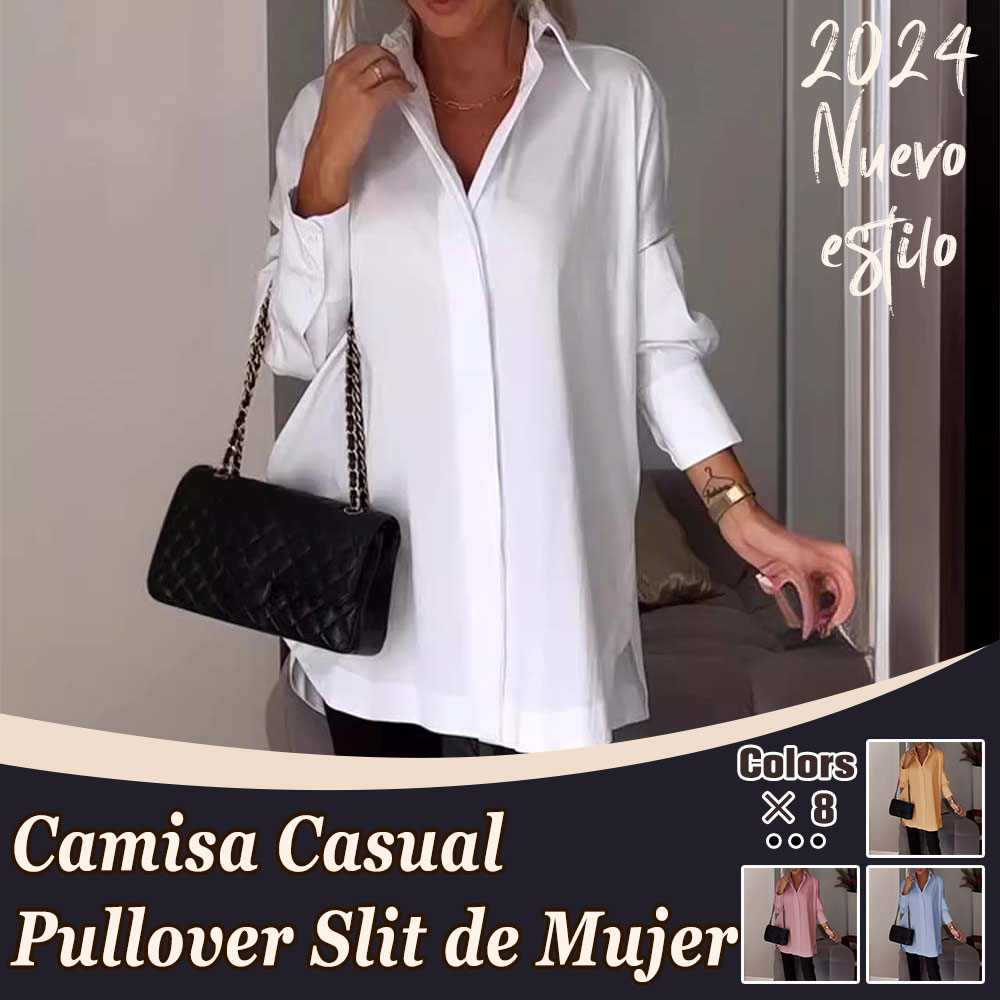 ▶ La clásica camisa larga tiene un estilo de jersey, lo que la hace rápida de poner y quitar. El diseño de la abertura lateral es flexible y elegante con el viento. Escote de solapa clásico para un look casual y elegante.