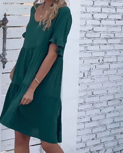1 * Vestido suelto con volantes y cuello en V informal de verano Falda para la playa