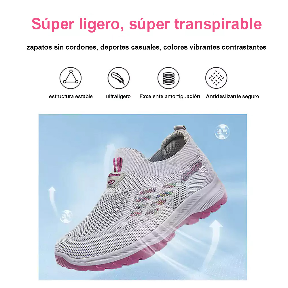 Nuestras cómodas zapatillas de deporte de malla para mujer de alta calidad se amoldarán a tus pies y te harán sentir como si estuvieras caminando sobre almohadas suaves.